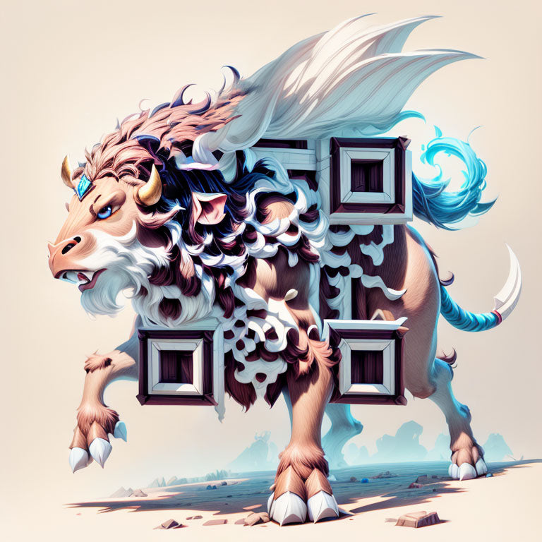 A mighty brown Minotaur stands proudly at the center of this crafted QR code, evoking strength, endurance, and legend. The artistic QR code channels the mythological power of the labyrinth's guardian with vibrant, earthy tones. A unique QR code like this immerses viewers in thrilling fantasy worlds.
