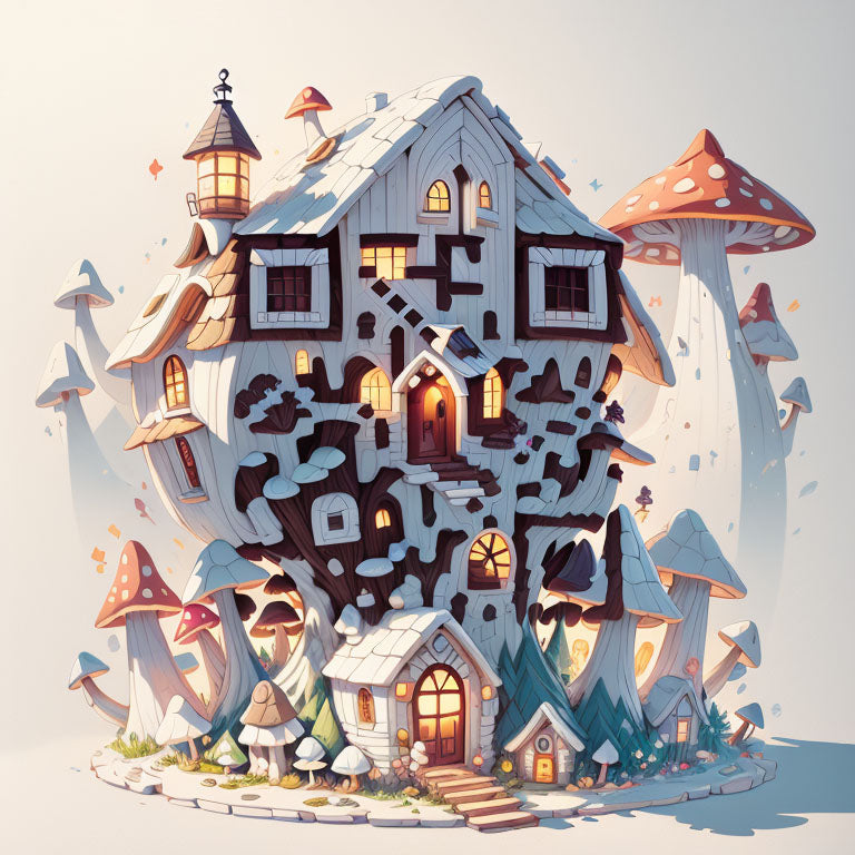 An intricate mushroom house, complete with windows and a chimney, invites imagination through this crafted QR code. Symbolizing hidden worlds and magical realms, the artistic QR code transforms the ordinary into the extraordinary. This unique QR code’s detailed design fuels storytelling and creativity.