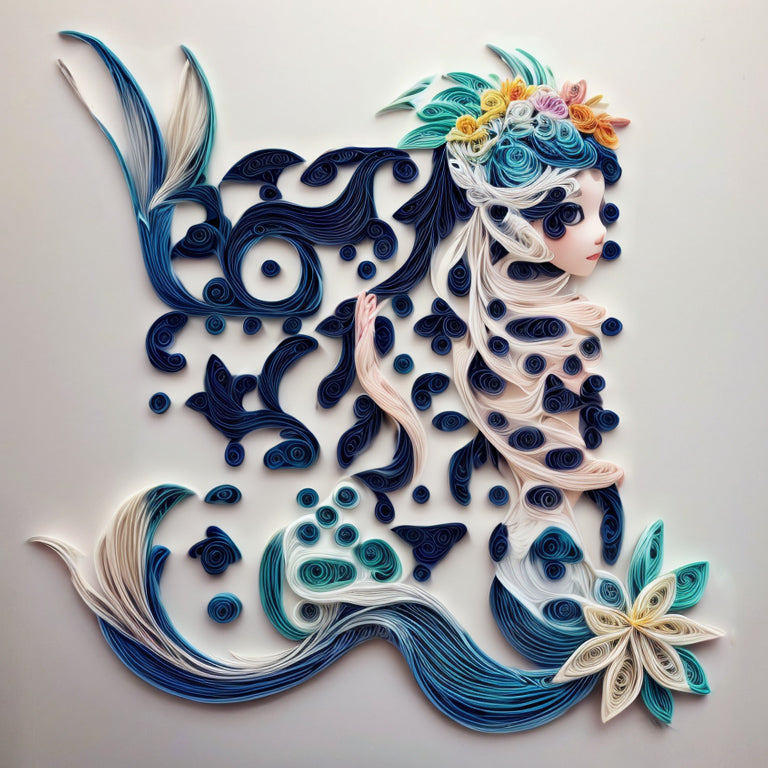 Let your imagination run wild with QR's fine art of paper quilling, where a mermaid and blossoming flowers create a scene of beauty. Each twist and curl in these mesmerizing designs invites viewers to immerse themselves in a world of imagination and creativity.
