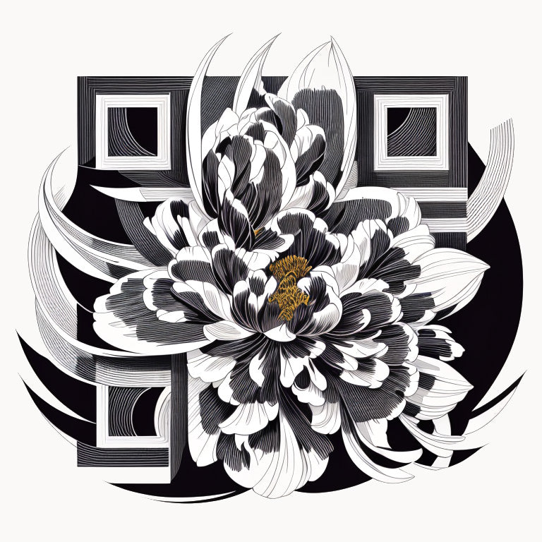 A peony in full bloom with layered petals creates an intricate and elegant tattoo design. The peony symbolizes romance, beauty, and wealth, depicted with exquisite detail. The unique tattoo QR code is seamlessly integrated into the background, merging the beauty of the flower with the modern touch of digital art. The QR code enhances the elegance of the design while adding a contemporary digital twist.