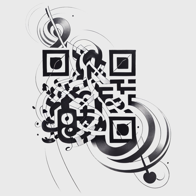 An abstract treble clef intertwined with musical notes creates a dynamic and expressive design in this unique tattoo QR code. The fluid lines of the clef and notes symbolize the power of music and creativity, while the QR code is seamlessly woven into the design, offering a modern twist to this musical tribute.