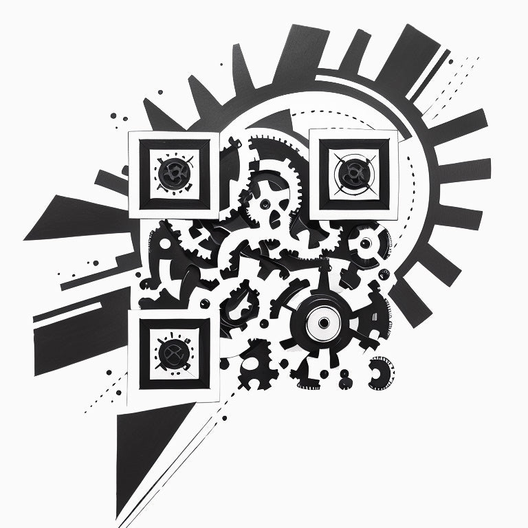 A set of interconnected gears with sharp edges and tiny, detailed features, symbolizing the mechanics of life and technology. This crafted QR code tattoo represents precision, innovation, and the continuous motion of progress. The gears form a seamless design, with the QR code carefully integrated into the mechanism, creating a harmonious balance between industry and art.