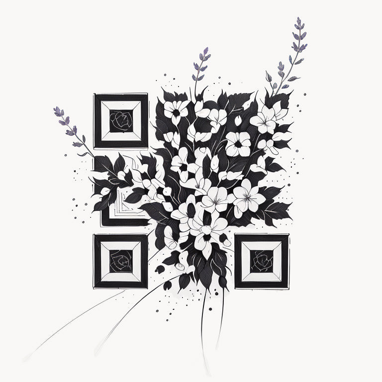 A bouquet of flowers featuring lavender is captured in soft, delicate details in this unique tattoo QR code. Lavender, known for its soothing qualities and symbolic connection to peace and calm, is beautifully rendered with subtle shading and gentle lines. The QR code is carefully integrated into the composition, adding a modern twist to this elegant and timeless floral design.