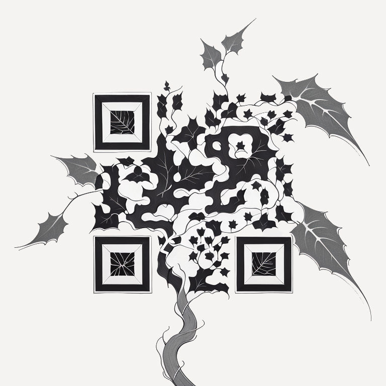A delicate ivy vine curls around a branch, symbolizing growth and connection to nature. This unique QR code tattoo uses graceful lines to depict the vine’s journey, intertwining with the branch to create a harmonious design. The simplicity of the vine contrasts beautifully with its complex growth patterns, and the QR code seamlessly incorporated into the tattoo bridges nature's timeless beauty with modern digital technology.