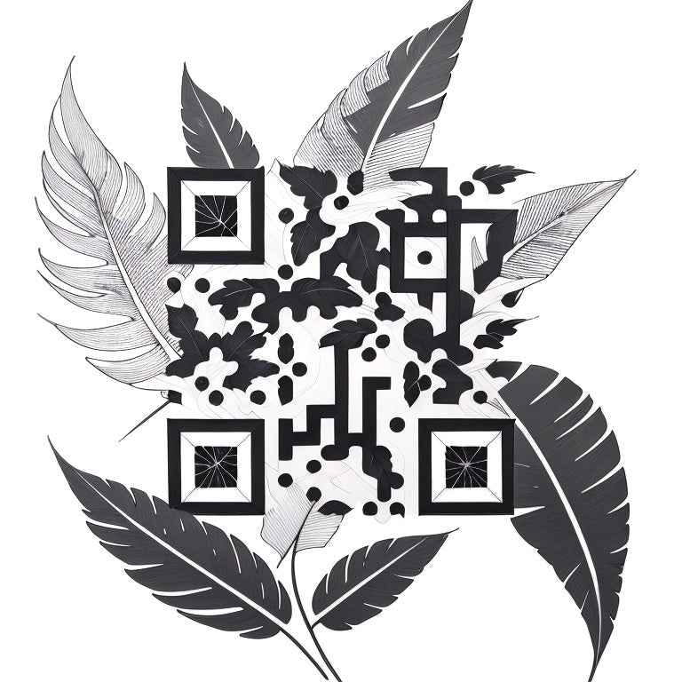 The leaves of a tropical plant, with bold curved lines and soft shading, form a lush and vibrant tattoo design. The plant symbolizes growth, vitality, and connection to nature. A unique QR code is embedded in the center of the design, seamlessly blending the natural beauty of the plant with the modern functionality of the QR code in this crafted tattoo.