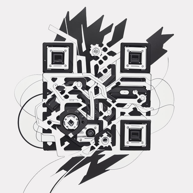 An abstract design reminiscent of electronic mechanisms, with sharp lines and fragmented elements that hint at technology and innovation. This artistic QR code tattoo represents the fusion of art and tech, with each abstract element contributing to the overall concept of advancement. The QR code is integrated into the design, linking the visual abstraction with modern digital technology.