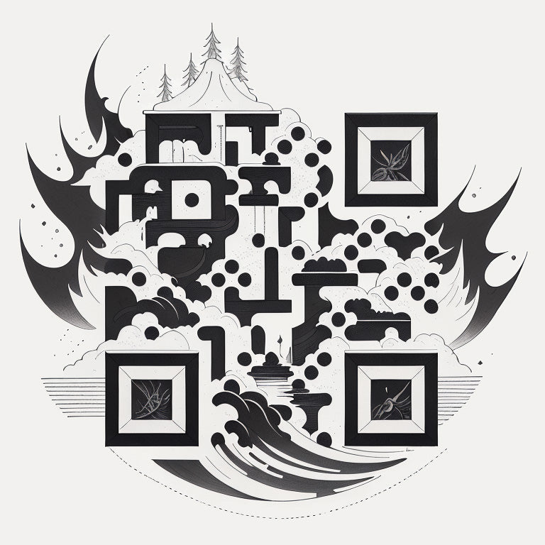 A floating island with abstract waves and hills is depicted in this unique tattoo QR code, blending the surreal and the natural. The island, with its dreamlike qualities, symbolizes freedom and escape, while the QR code is subtly integrated into the swirling waves and hills. This tattoo is perfect for those who appreciate the beauty of fantasy and the power of imagination.