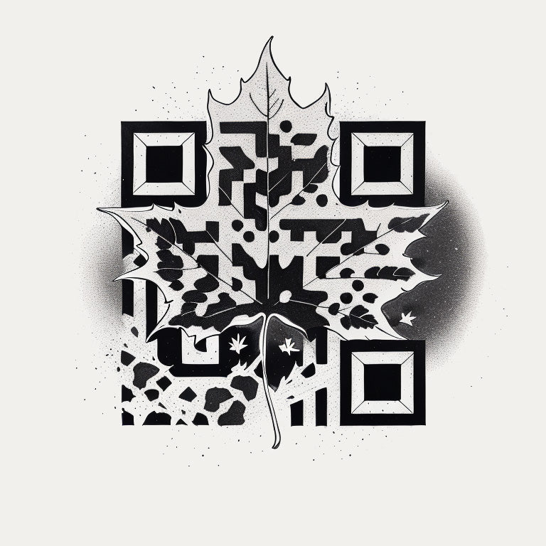 A maple leaf, rendered in fine detail against a white background, forms the central element of this unique tattoo QR code. The maple leaf, symbolizing the changing seasons and the beauty of nature, is complemented by the subtle integration of the QR code, offering a modern touch to this timeless symbol of fall.