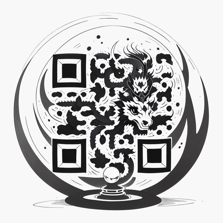 A dragon inside a crystal ball forms a mystical and captivating image in this unique tattoo QR code. The dragon represents strength and wisdom, while the crystal ball adds an element of fortune and mystery, with the QR code subtly integrated into the design, merging fantasy with modern technology.