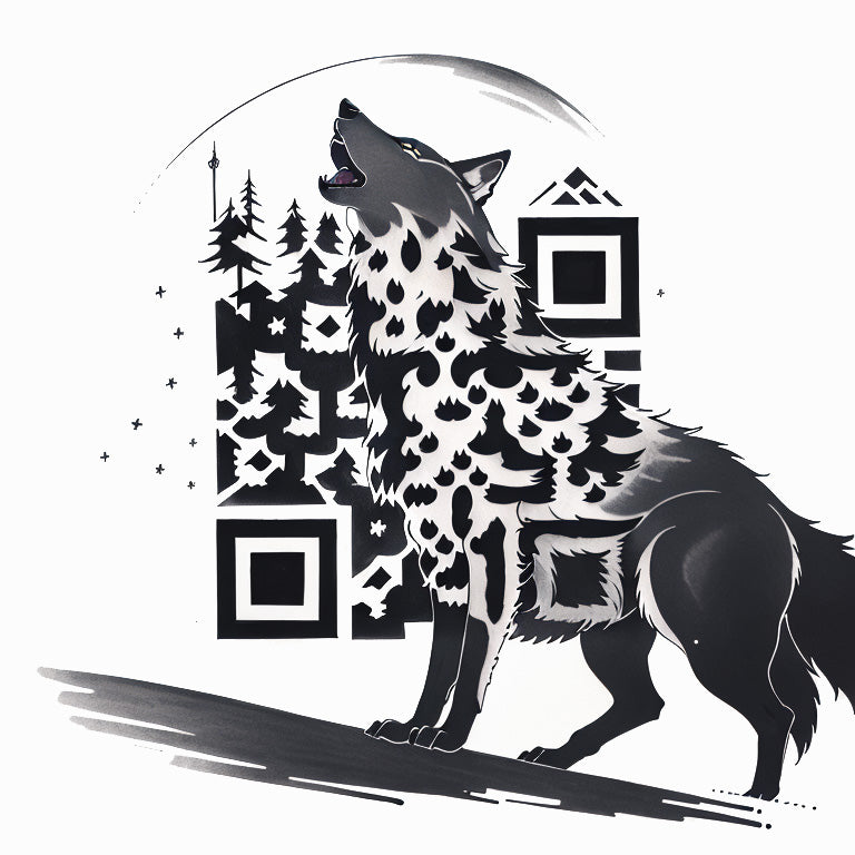 A wolf howling at the moon against a dark forest backdrop forms the central design of this art tattoo QR code. The wolf’s silhouette and the glowing moon are highlighted by intricate details, with the QR code integrated seamlessly into the design. This tattoo represents freedom, wildness, and the mysterious forces of nature, ideal for those drawn to the untamed.