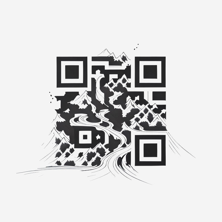 A long mountain path winds along a steep slope, leading high into the mountains. The rugged terrain and vast landscape evoke a sense of adventure and resilience. This unique QR code tattoo features the winding path at its core, symbolizing life's journey and the challenges one must face. The QR code seamlessly blends into the design, offering a modern digital element to this scenic and symbolic tattoo.