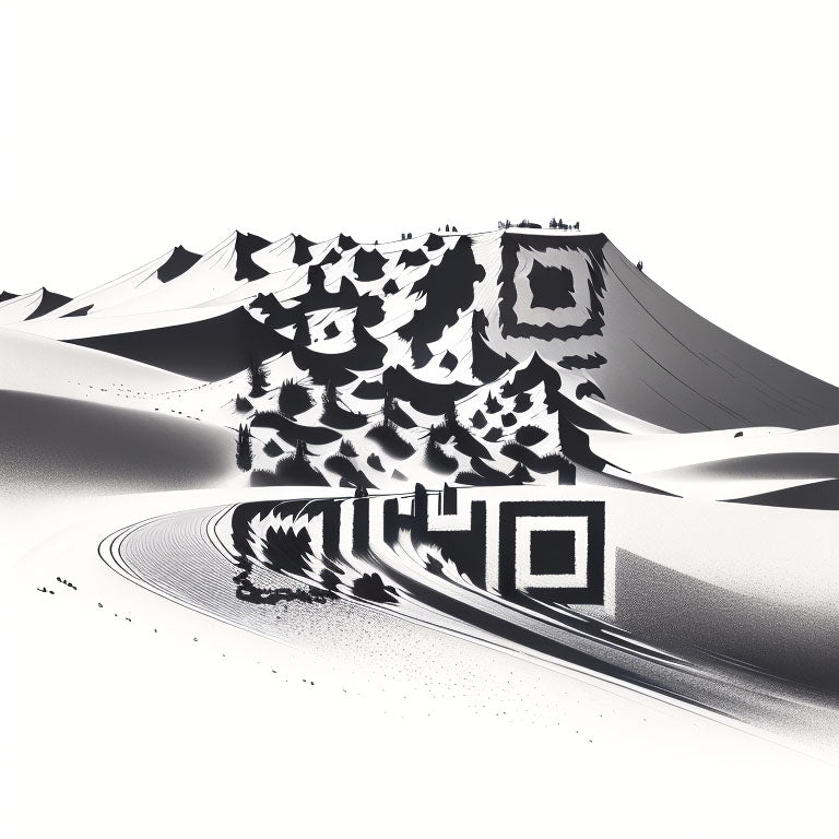 A windswept dune in a vast desert, with sands stretching into the distance, symbolizes solitude, resilience, and the raw beauty of untouched nature. The dune’s curves represent the passage of time and the constant movement of the natural world. The unique QR code is integrated into the design, blending the vast, timeless desert with the innovative digital art of the QR code for a powerful tattoo.