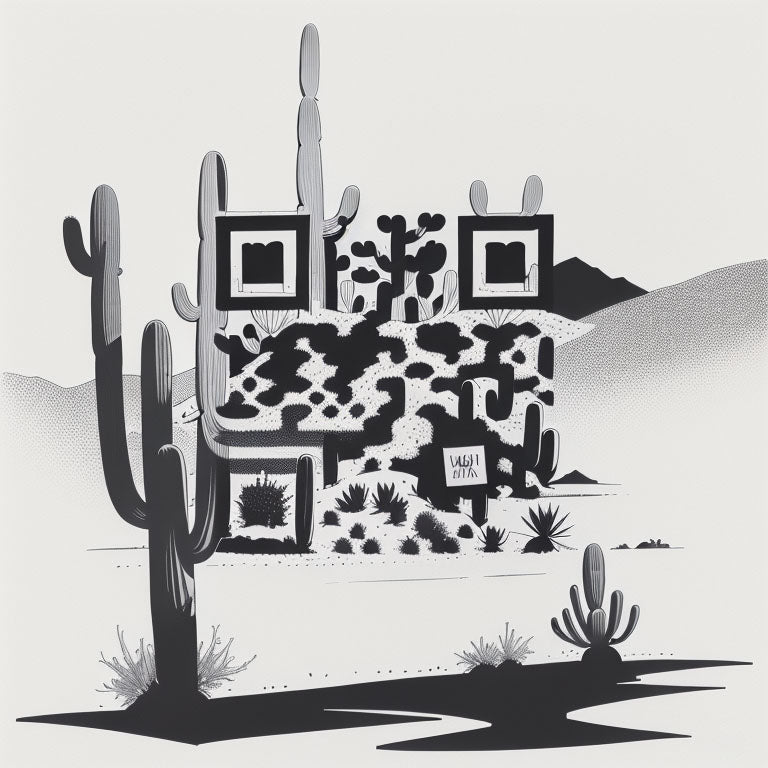 A vast desert landscape, featuring a solitary cactus surrounded by sand, evoking feelings of isolation, heat, and stillness. This unique QR code tattoo symbolizes survival, resilience, and the harsh beauty of the desert. The QR code is subtly integrated into the design, enhancing the stark, quiet atmosphere of this barren yet beautiful landscape.