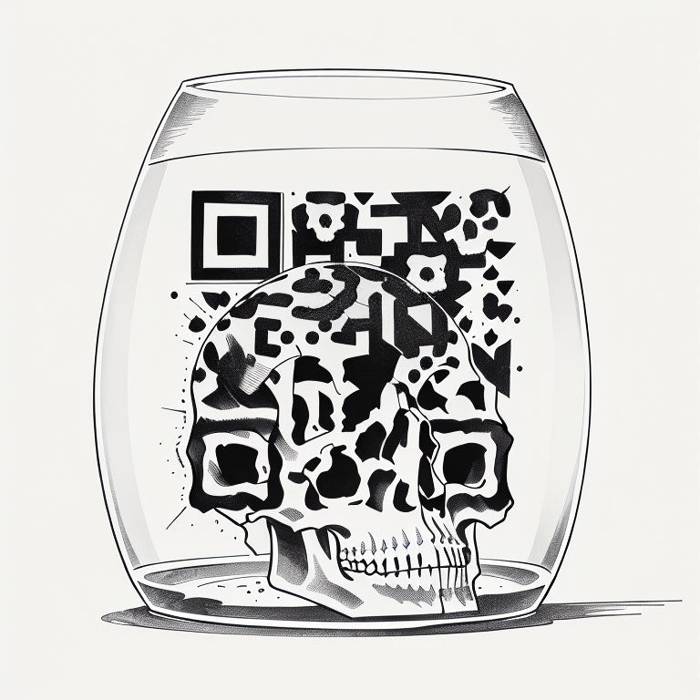 A skull placed in a glass terrarium, like a scientific specimen, forms a unique and intriguing tattoo design. The glass terrarium represents containment and study, while the skull serves as a symbol of mortality and impermanence. The unique QR code is subtly integrated into the terrarium, offering a digital twist to this thought-provoking tattoo. The QR code adds a modern, technological layer to this symbolic fusion of art and science.