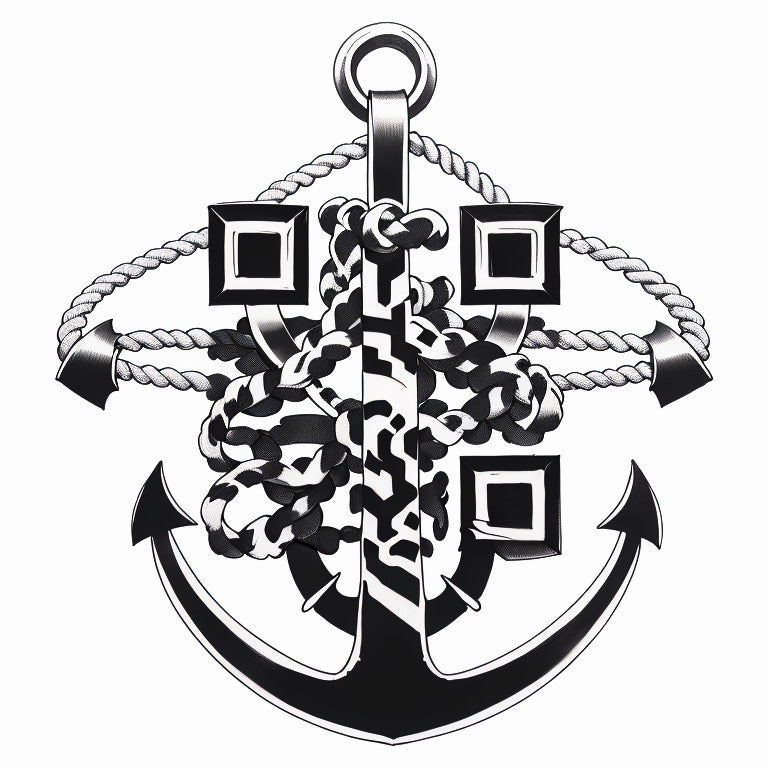 An anchor entwined with a rope represents stability, resilience, and the unwavering spirit of the sea. The fine ink detailing accentuates the strength of the anchor and the fluid motion of the rope, creating a timeless nautical composition. A carefully placed art tattoo QR code enhances the design, making it a perfect fusion of maritime symbolism and modern digital connectivity. The QR code adds functionality to this meaningful design.