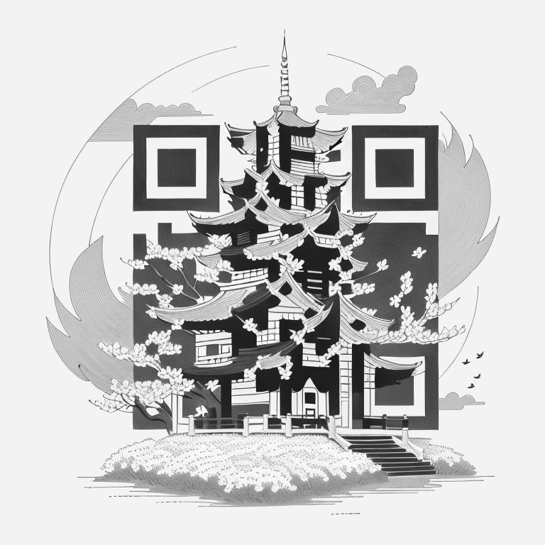 A pagoda surrounded by cherry blossoms captures the serene beauty of spring. This artistic QR code tattoo celebrates nature’s seasonal wonders, with delicate flowers and traditional architecture blending into a peaceful scene. The pagoda represents harmony and the fleeting beauty of life, accentuated by the soft petals of the blossoms, and the QR code integrated into the design connects traditional symbolism with the digital age, blending serenity with functionality.