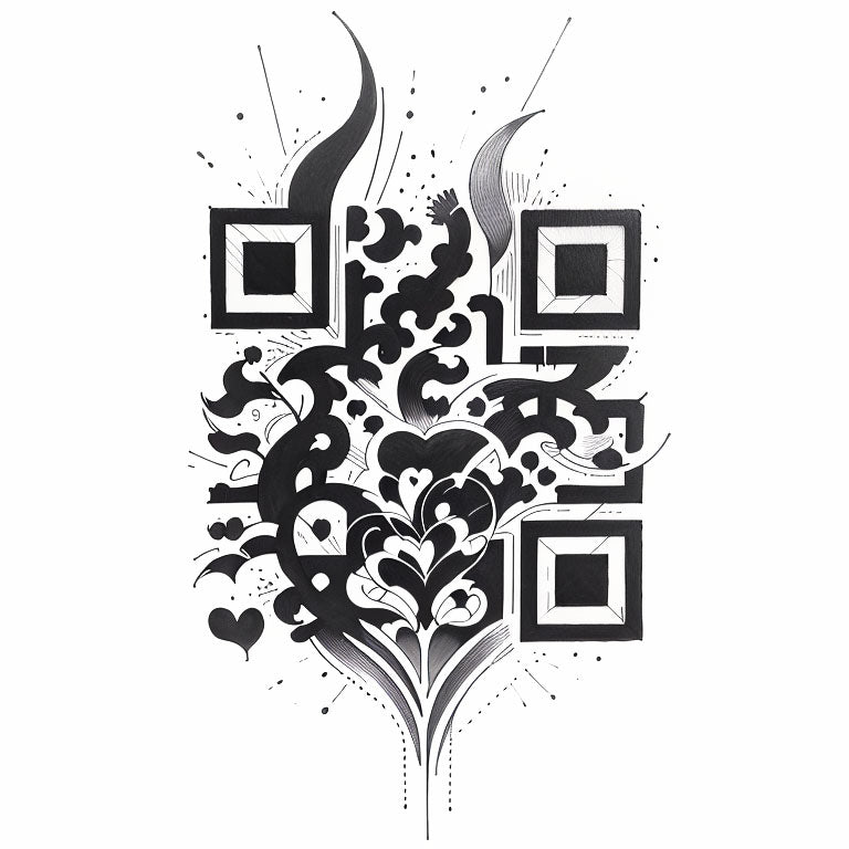 Lines in a beautiful pattern create an abstract heart shape in this tattoo, symbolizing love, connection, and emotional expression. The flowing, intricate lines form a heart, while still maintaining an air of abstract elegance. The unique QR code tattoo is seamlessly incorporated into the design, allowing it to connect both the emotional and digital realms. This art tattoo QR code design blends love and technology, offering a modern take on a timeless symbol.