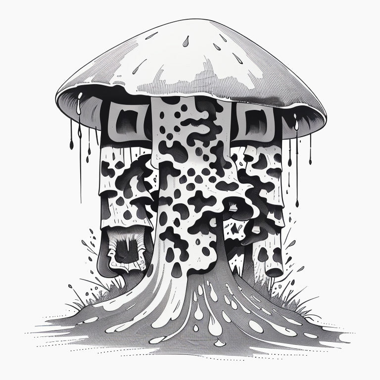 A huge mushroom growing like a tree stands as the focal point in this unique tattoo QR code. The mushroom's massive size and intricate detailing create a surreal and whimsical effect, with the QR code seamlessly embedded within the design. This tattoo captures the fantastical and magical aspects of nature, making it perfect for those who love fantasy and imaginative art.