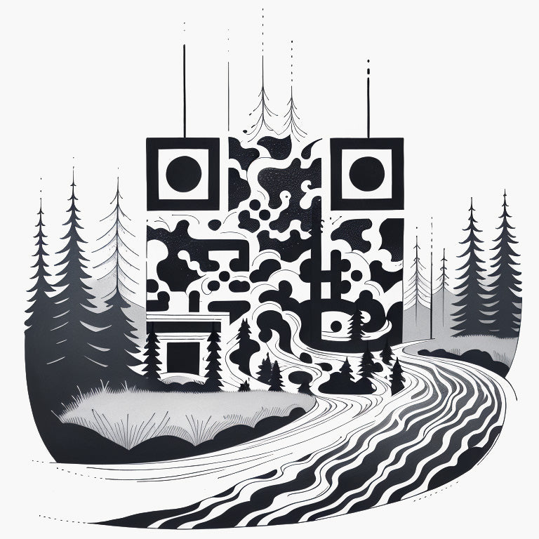 The beauty of nature is on full display in this tattoo QR code, featuring a river flowing through a forest, with trees rising along its banks. The tranquil scene captures the essence of serenity and harmony, with the QR code subtly integrated into the composition. Perfect for nature lovers and those seeking peace and balance.
