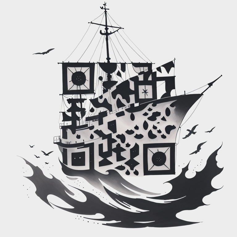 The tattoo of the Flying Dutchman under the moonlight on a white background evokes mystery and the unknown. The legendary ghost ship, said to sail endlessly through the seas, symbolizes a haunting quest or a doomed fate. The unique QR code is embedded in the design, seamlessly blending folklore with modern technology. This QR code creates a connection between the eerie narrative and the digital age, adding an intriguing modern touch to a classic tale.