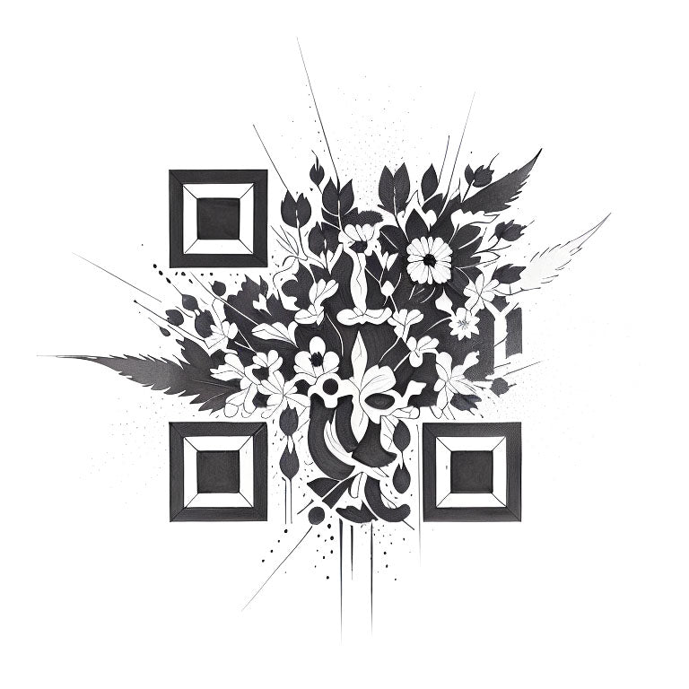 A flower arrangement in the form of a bouquet represents tenderness, love, and natural beauty. The flowers are carefully arranged to show their delicate details, with soft petals and vibrant colors that evoke feelings of affection and joy. The unique QR code tattoo blends seamlessly into the bouquet, adding a touch of modernity to this classic representation of beauty. The QR code integrates digital elements into the natural beauty of the design.