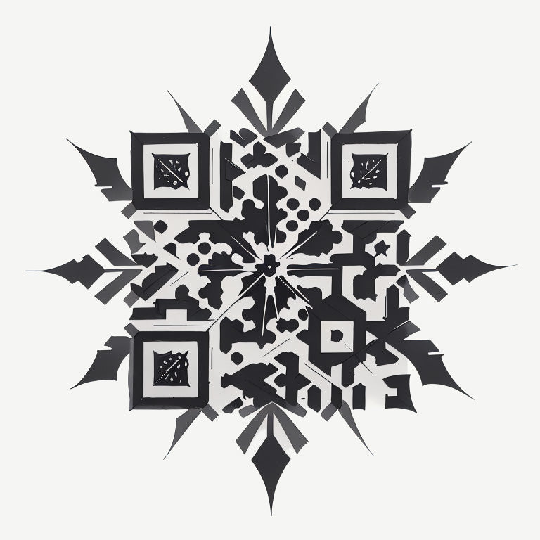An abstract ornament resembling a snowflake forms the centerpiece of this tattoo design, symbolizing purity, uniqueness, and the beauty of nature's patterns. The delicate lines and symmetrical shape of the snowflake evoke a sense of balance and serenity. The unique QR code tattoo is incorporated into the design, adding a contemporary twist to this natural symbol. This art tattoo QR code design combines the elegance of the snowflake with the functionality of QR code technology.