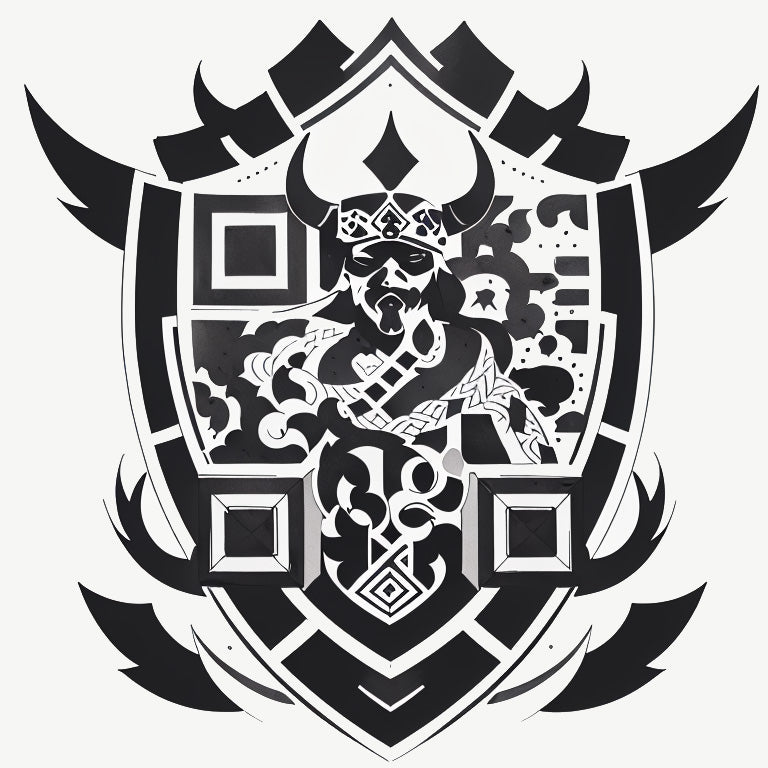 A bold Viking-style shield stands as a symbol of strength, protection, and warrior spirit. Decorated with intricate Norse patterns, the shield exudes historical depth, paying homage to the fearless seafarers of the past. The symmetrical carvings and strong lines add a sense of power and balance to the composition. In the center of the design lies a unique tattoo QR code, seamlessly integrated to combine ancient warrior heritage with modern digital innovation.