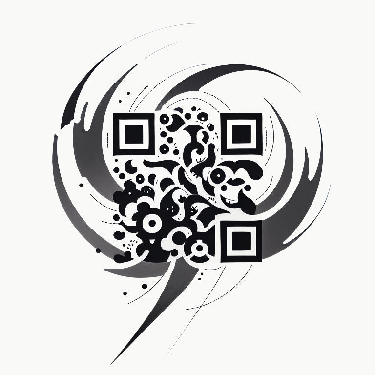 A minimalist endless loop filled with decorative elements creates a tattoo that represents infinity, continuity, and the interconnectedness of all things. The loop is decorated with intricate patterns, adding depth and texture to the simple yet profound design. The artistic QR code is incorporated into the design, seamlessly blending timeless symbols with modern digital innovation for a unique tattoo. The QR code connects the infinite loop with the digital age for a modern twist.