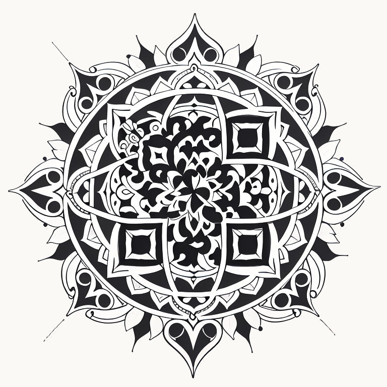 An intricate mandala emanating from the center, resembling a piece of jewelry, creates a stunning and symmetrical design. The mandala symbolizes unity, wholeness, and the infinite nature of life. The crafted QR code is embedded within the center of the mandala, adding a digital dimension to the artistic piece. The QR code enhances the mandala's spiritual symbolism, fusing ancient art with modern technology.
