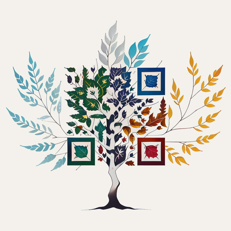 A magnificent tree stands tall, its leaves displaying the vivid colors of all four seasons—lush greens of spring, bright summer golds, fiery autumn reds, and cool winter blues. This stunning representation of nature’s ever-changing beauty symbolizes growth, transformation, and the passage of time. The intricate digital painting technique enhances the depth and texture of the foliage, creating a visually rich composition. At the heart of the artwork lies a unique tattoo QR code, seamlessly blending modern technology with the timeless elegance of nature, ensuring the design is as interactive as it is breathtaking.