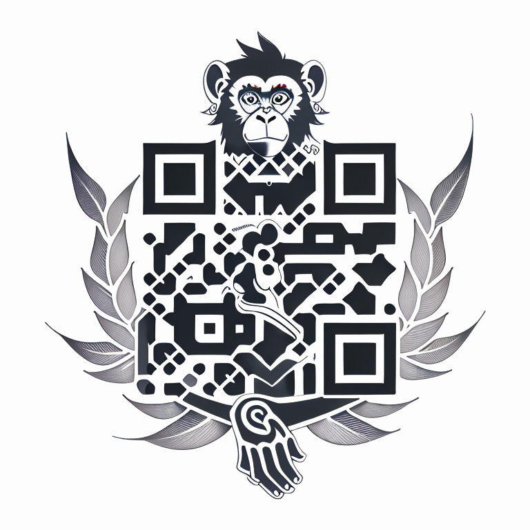 A monkey, created from geometric shapes, comes to life in this unique tattoo QR code design. The monkey, a symbol of playfulness and intelligence, is depicted through sharp, angular forms that create a dynamic, abstract composition. The tattoo art style uses bold lines and black-and-white contrasts, while the QR code adds a modern twist to the image. This tattoo is a creative fusion of animal symbolism and digital art, blending the ancient with the contemporary.