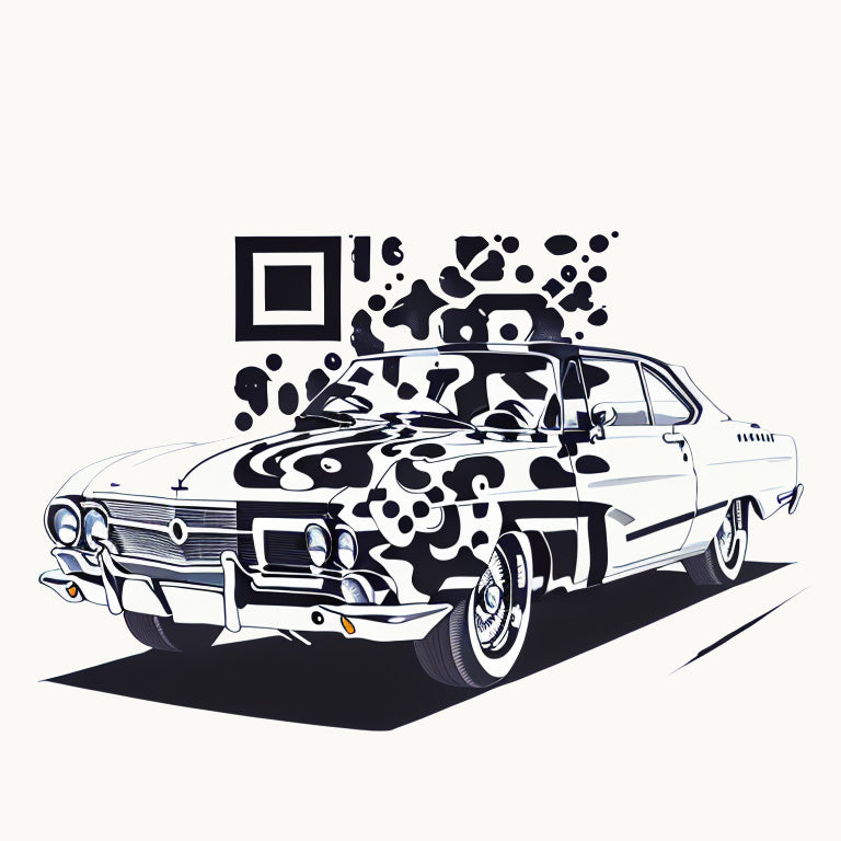 A retro car surrounded by paint splatters creates an energetic and creative vibe. This unique QR code tattoo blends vintage style with modern art, using bold splashes of color to form the car’s shape. The combination of movement and creativity makes this design a dynamic tribute to freedom and expression, with the QR code embedded within the design, bridging the past with the digital future.