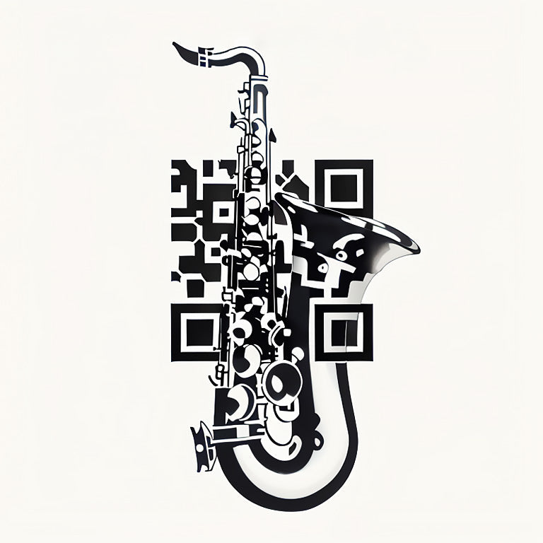 This artistic QR code tattoo captures the soul of jazz with a sleek saxophone design. Rendered in black-and-white digital tattoo art, the bold yet elegant strokes give the piece a timeless appeal. The QR code is seamlessly incorporated, making it a perfect blend of music, technology, and artistic expression. Whether you’re a musician or a lover of rhythm and melody, this tattoo embodies the spirit of sound in ink.