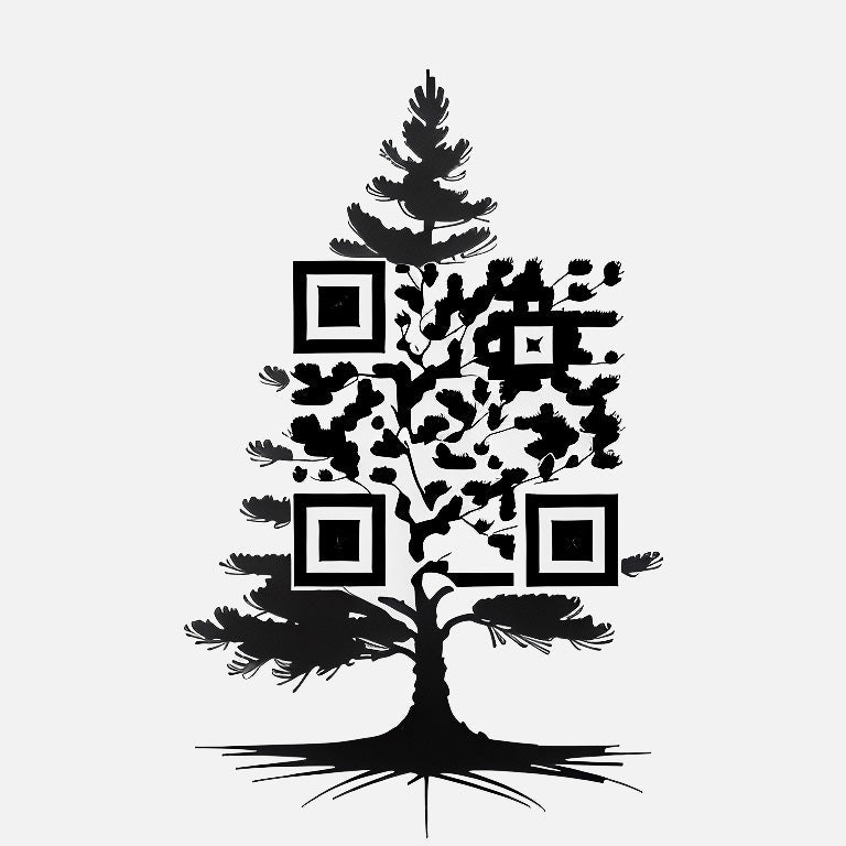 The silhouette of a pine tree, with the QR code hidden within its branches. This unique QR code tattoo embodies nature's enduring strength and quiet beauty, with the pine tree symbolizing longevity and resilience. The QR code is cleverly integrated into the tree’s intricate branches, merging the organic and digital worlds seamlessly.