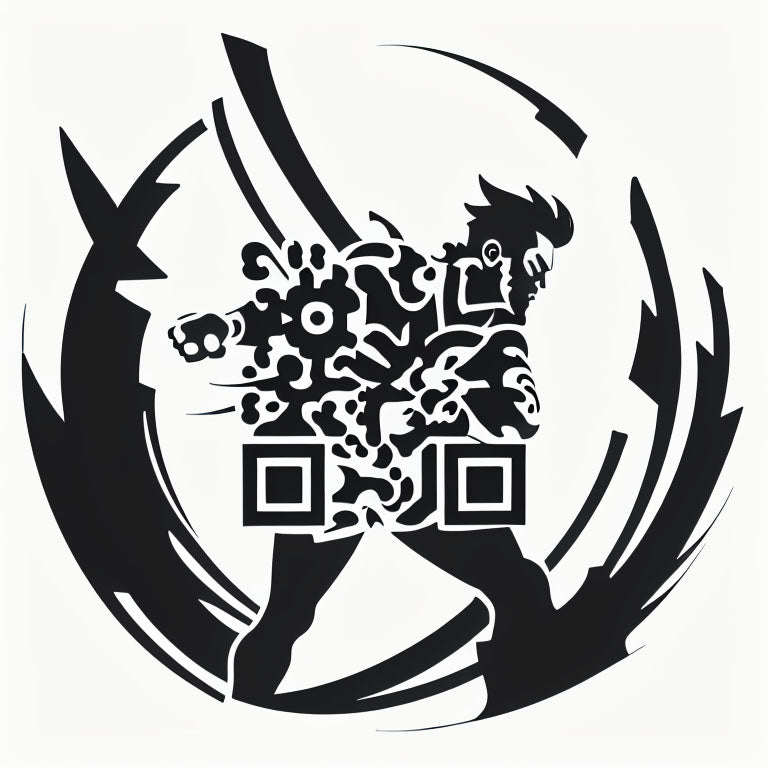 A fighter at the moment of impact, with energy emanating from the movement, is depicted in this unique tattoo QR code. The intense action and energy create a sense of strength and determination, with the QR code seamlessly integrated into the artwork. This tattoo is ideal for those who admire resilience, power, and the spirit of a warrior.