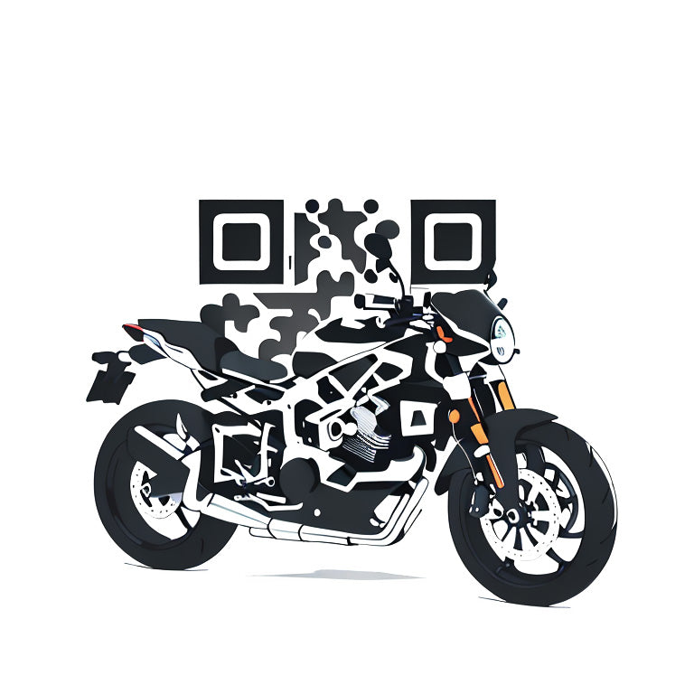 A motorcycle displayed in side view, in motion, captures the spirit of speed and adventure in this unique tattoo QR code. The sleek lines and motion of the bike evoke freedom and excitement, while the QR code is seamlessly integrated into the design, blending technology with the thrill of the open road.