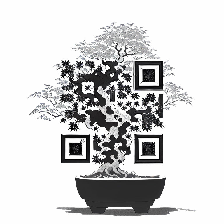 A symbol of patience and balance, this intricate QR code tattoo captures the essence of a beautifully cultivated bonsai tree. Rendered in fine ink painting style, the bold yet delicate strokes bring out the tree’s natural elegance. The crafted QR code is subtly placed within the design, blending tradition with modern artistry.