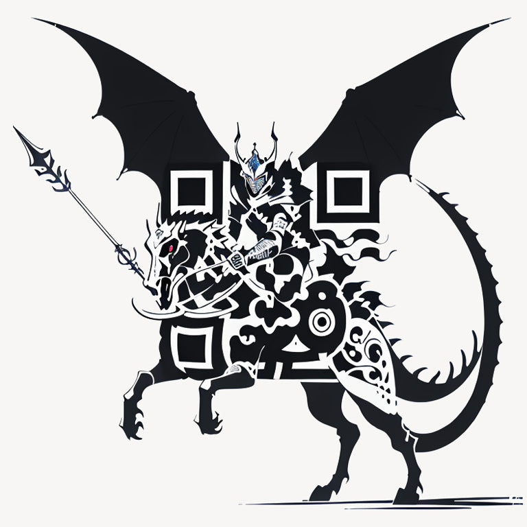 A knight riding a dragon, raising a spear high into the sky, takes center stage in this art tattoo QR code. The dynamic scene captures the power and grace of the knight and dragon, with the QR code integrated into the overall composition. The details in the dragon's scales and the knight's armor add to the epic nature of the design. This tattoo embodies strength, courage, and the spirit of adventure.