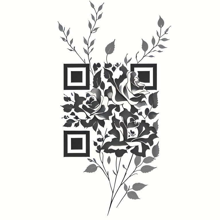 A minimalist composition of roses arranged in a vertical line creates an elegant and simple tattoo design. The roses symbolize love and passion, depicted with clean, precise lines. The unique QR code tattoo is skillfully incorporated into the design, adding a digital touch to this classic floral arrangement. The QR code adds a contemporary element to the timeless symbolism of the roses, bridging the natural world with technology.