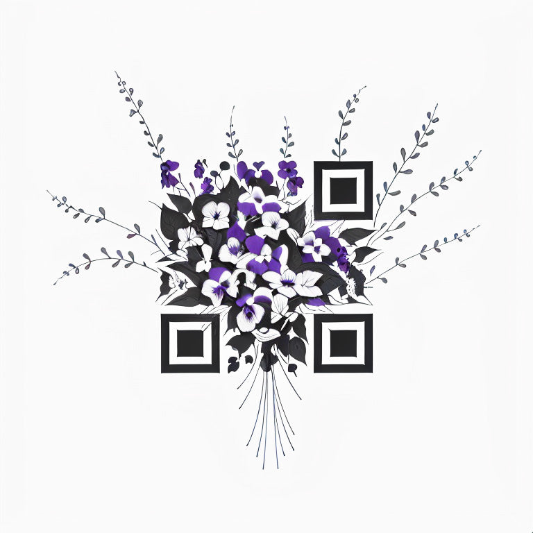 A cascading bouquet of violets, delicately arranged to form a beautiful floral composition. This unique QR code tattoo celebrates modest beauty and grace, with the violets symbolizing humility and loyalty. The QR code is seamlessly integrated into the design, creating a balance between nature’s purity and the digital world.