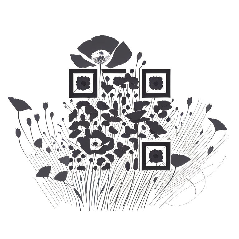 A poppy field swaying in the light breeze creates a tranquil and natural tattoo design. The delicate movement of the poppies, with their vibrant red petals, symbolizes remembrance and peace, while the breeze adds a sense of fluidity and change. The crafted QR code is delicately woven into the design, merging the symbolism of nature with the functionality of a modern QR code for a unique, artistic tattoo.