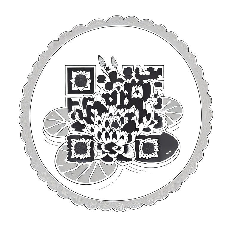 A water lily on the water, blooming in a circular composition, captures the serenity and beauty of nature. The water lily, often associated with purity and enlightenment, floats gracefully on the surface, surrounded by soft ripples. The crafted QR code is carefully integrated into the design, combining the peacefulness of nature with the innovation of modern technology. The QR code seamlessly merges the natural world with digital art.