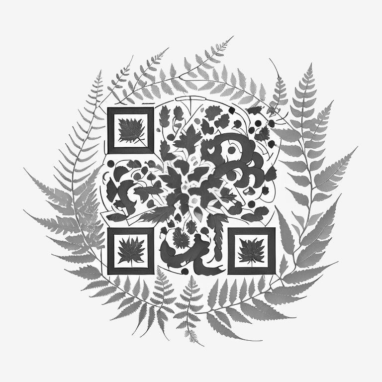 A delicate fern leaf forms a circular composition in this unique tattoo QR code, symbolizing growth, renewal, and nature's quiet beauty. The intricate details of the leaf are captured in fine line work, while the QR code is integrated into the design, merging the beauty of the natural world with modern art.