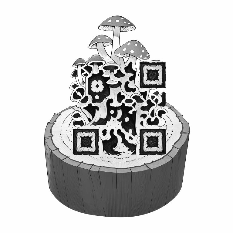 A mushroom kingdom, growing from a stump, creates a whimsical scene in this tattoo design, with tiny mushroom houses dotting the landscape. This fantasy-inspired tattoo transports the viewer into a magical world, where mushrooms form an enchanting kingdom. The unique QR code tattoo is integrated into the design, bringing a digital connection to this fantasy realm. The QR code merges seamlessly with the fantasy elements, combining the charm of nature with the convenience of modern technology, making the tattoo both artistic and functional.
