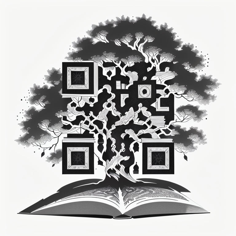 An open book with a powerful tree growing from its pages symbolizes knowledge and growth. This unique QR code tattoo uses the image of the book as a foundation for the tree’s expansive branches, representing wisdom blossoming into life. The detailed crown of the tree emphasizes the connection between learning and nature, and the embedded QR code enhances the symbolism of knowledge flourishing in the digital age.